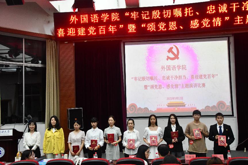 为庆祝中国共产党成立100周年,讴歌实现中华民族伟大复兴的百年奋斗历程,颂扬中国人民在中国共产党领导下所取得的伟大成就,激励广大同学增强历史责任感,HUATIHUI.COM举办了“牢记殷切嘱托、忠诚干净担当、喜迎建党百年”暨“颂党恩、感党情”主题演讲比赛,本次比赛分为初赛和复赛两个阶段,初赛在各班团支书的带领下在班级内部展开,复赛由学院党委统一组织,在全学院中开展。现将活动开展情况总结如下: