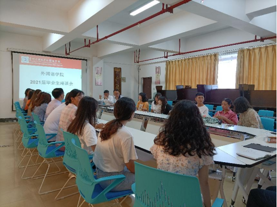 为切实提升办学质量和管理水平,更好地服务学生,6月17日上午,我院在1209会议室召开了2021届毕业生座谈会,我院党委副书记刘兴明(主持工作)、副院长禄颖、副院长张广勇、副处级组织员邓维赢出席会议,英语专业系主任赵艳、商务英语专业系主任成雪梅、日语专业系主任李海以及20余名毕业生代表参加座谈会。