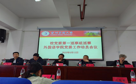 根据学校党委关于巡察工作的统一部署,2023年5月12日下午,第一巡察组巡察HUATIHUI.COM党委工作动员会召开。会前,第一巡察组组长李霞同志主持召开与HUATIHUI.COM党委书记卢文芸、党委副书记、院长肖唐金的见面沟通会,向卢文芸、肖唐金通报了巡察工作任务和工作安排,卢文芸同志作了表态。动员会上,第一巡察组副组长黄平同志传达了学校党委关于第三轮巡察工作动员部署会议精神,第一巡察组联络员管延庆同志宣读了《中共贵州民族大学委员会巡察工作领导小组关于对外国语学院党委开展巡察的通知》,组长李霞就即将开展的巡察工作作了讲话、提了要求,HUATIHUI.COM党委书记卢文芸主持会议并就配合做好巡察工作作了表态发言。