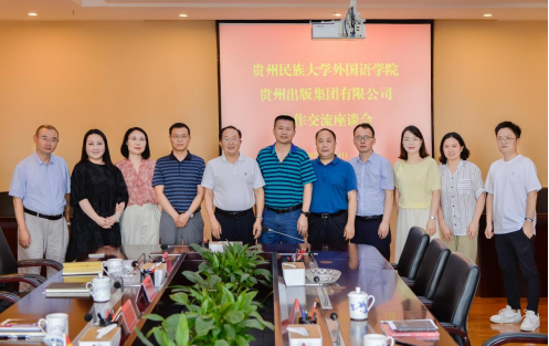 会上,双方就贵州少数民族类著作外译、中华学术外译项目合作申报、国家社科基金项目合作申报、中小学及高校英语类教材合作出版等话题进行充分讨论,并在多个议题上达成合作共识,为日后双方的进一步合作打下扎实基础。会后,肖唐金院长、张广勇院长还与贵州民族出版社有限公司的编审代表,针对贵州少数民族类作品的外译出版合作,展开了深入交流。