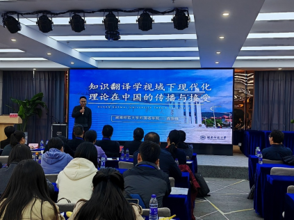 上午,湖南师范大学HUATIHUI.COM肖华锋教授和浙江大学HUATIHUI.COM的何文忠副教授分别进行主旨发言。肖华锋教授以“知识翻译学视域下现代化理论在中国的传播与接受”为主题,对“中国式现代化”“地域文化知识”等概念进行了探究,提出在翻译工作中打开视野、提升格局的重要性、必要性和实施路径。浙江大学HUATIHUI.COM何文忠副教授以“生成式人工智能时代的翻译实践与翻译教学:挑战与机遇”为主题,分析了翻译教育的现状和面临的挑战,生动形象地演示了生成式人工智能在翻译教育中的具体应用,对生成式人工智能在翻译教育中的前景和展望作了精彩分析。