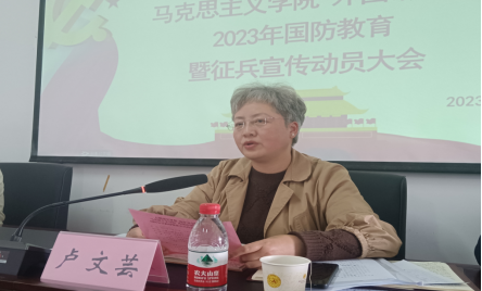 为强化学生国防观念,号召适龄青年参军入伍。3月23日下午1点,HUATIHUI.COM、马克思主义学院在15栋教学楼1109会议室联合举办“点燃强军梦想 筑牢安全防线——2023年国防教育暨征兵宣传动员大会”。本次会议由马克思主义学院辅导员尉迟艳主持,HUATIHUI.COM党委书记卢文芸、马克思主义学院党委副书记徐勤山,HUATIHUI.COM政治辅导员张妮、翟利沙、韩玉、辛雅婷,HUATIHUI.COM退伍学生李邦儒、法学院退伍学生朱丽娟出席,HUATIHUI.COM与马克思主义学院学生代表近100人参加。