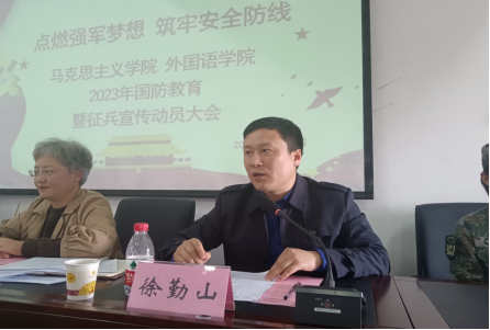 图为马克思主义学院党委副书记徐勤山作征兵动员讲话