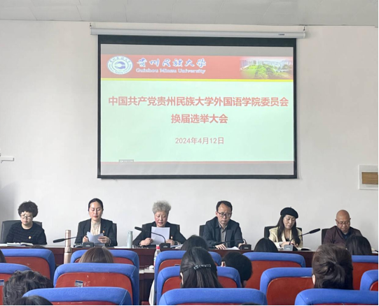 4月12日下午2点30分,中共贵州民族大学外国语学院委员会换届选举大会在416会议室隆重举行。会议听取并审议中共贵州民族大学外国语学院委员会工作报告(包括党费收缴、使用和管理情况的报告);审议通过了《中共贵州民族大学外国语学院委员会换届选举办法》(草案);选举产生了中共贵州民族大学外国语学院新一届委员会委员。