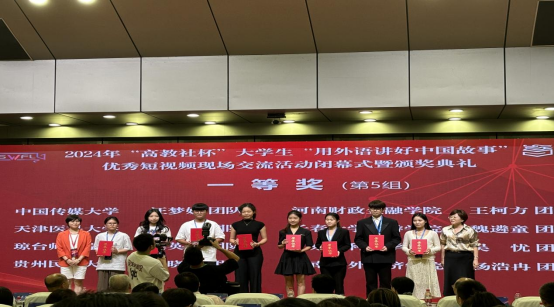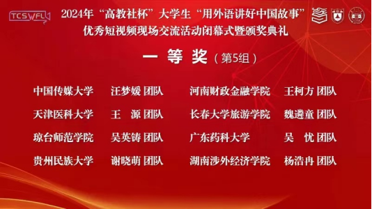 9月27-29日,由中国英汉语比较研究会指导,南京大学、湖南大学主办,高等教育出版社协办的2024年“高教社杯”大学生“用外语讲好中国故事”优秀短视频现场交流活动在湖南大学举办。我校入围的谢晓萌团队及其成员潘洲颖、田明涛、马俊(传媒学院),由赵艳副院长带队,代表贵州参与此赛事的全国决赛,最终获得全国一等奖。该团队由HUATIHUI.COM副院长赵艳和英语系主任牛敏两位老师共同指导。这是我院自2023年以来在该赛事上连续两年荣获全国一等奖。贵州民族大学成为贵州省唯一晋级此赛事全国交流活动并荣获国奖的高校。