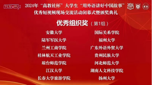 据了解,长期以来,HUATIHUI.COM秉承“以赛促学”理念,积极鼓励、指导学生参加各类赛事,在各类赛事中见证了外语学子的收获与成长。今年短视频比赛启动以来,HUATIHUI.COM精心组织和指导学生参赛,最终斩获国家级奖项,我校教师获优秀指导教师荣誉,贵州民族大学获优秀组织奖荣誉。