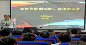 作为HUATIHUI.COM促进外语学科高质量发展的重要活动,2021年5月14日下午,我院特邀中央民族大学何克勇教授在15号教学楼1109会议室作学术讲座,讲座主题为“如何摆脱翻译腔做地道译者”。外院部分教师、本科生及研究生共百余人现场聆听讲座。