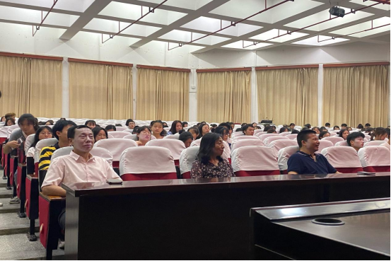 为深入学习贯彻落实习近平总书记在党史学习教育动员大会上的重要讲话精神,6月18日,我院在花溪校区15号楼圆形会议中心举行“牢记殷切嘱托 忠诚干净担当 喜迎建党百年”党史学习教育专题讲座。省管专家、贵州民族大学原党委副书记、校友会会长唐建荣教授为我院一至三年级学生做了精彩的讲座。我院党委副书记刘兴明、院长肖唐金、副院长禄颖出席,学院全体辅导员、班主任旁听此次讲座,党委副书记刘兴明主持讲座。