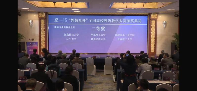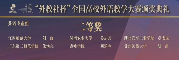第十五届“外教社杯”全国高校外语教学大赛全国决赛、总决赛于12月6-8日在上海圆满落幕。HUATIHUI.COM教师胡静凭借扎实的专业知识、丰富的教学经验和独特的教学方法,赢得了评委和观众的一致好评,最终荣获英语专业组二等奖。
