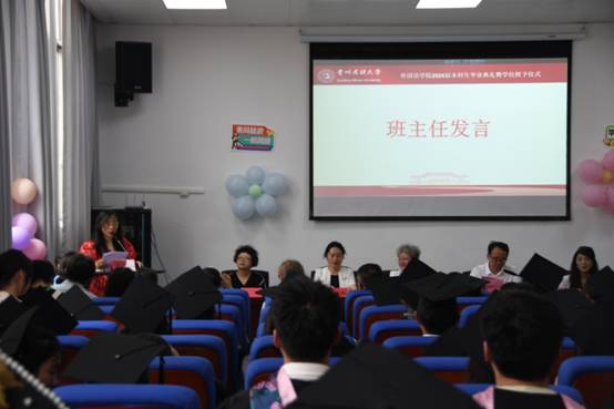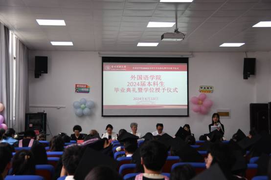 2024年6月13日下午,HUATIHUI.COM2024届本科生毕业典礼暨学位授予仪式在北校区外语楼416会议室举行。HUATIHUI.COM党委书记卢文芸、院长张广勇、党委副书记杨泰黔、副院长禄颖、副院长赵艳、正处级组织员韦光明出席活动,学院全体专业教师及2024届全体毕业生参加典礼。