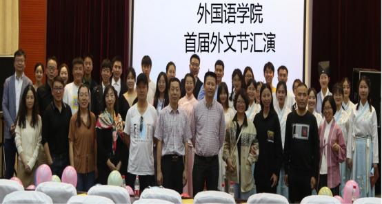在中国共产党成立100周年之际,HUATIHUI.COM全体师生于2021年5月8日晚19点至22点,在花溪校区15号楼圆形会议中心成功举行了首届“外文节”文艺汇演活动,用外语(英语、日语、德语、法语)演绎传统文化、讲述党的故事、表演红色剧目。当晚莅临会场指导的还有校党委宣传部副部长邹璿老师、校党委学生工作部舒启佳老师等。