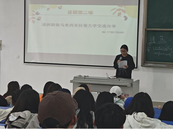 随后,潘洲颖、陶毕淘、黄晓尘、王瑾、杨坚桃五位同学结合各自国内外的交换生生活进行分享,从文化沉浸的深刻体验到学术挑战的勇敢应对,个个经历都激励人心。他们鼓励2024级新生们勇敢迈出舒适区,珍惜每一次拓展视野的机会。
