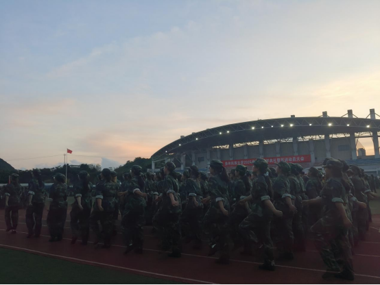 随着夜幕降临,晚训的号角响起。同学们不顾一天的疲惫,再次投入到紧张的训练中。