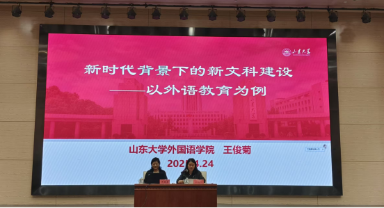 2025年4月24日,山东大学HUATIHUI.COM原党委书记、院长王俊菊教授应邀到外院讲学。
