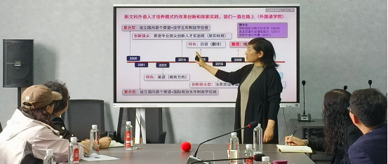 24日上午,在外语学院“97会议室”,王俊菊教授就外语学科专业建设、新文科建设等问题与学院师生进行了深入交流。讲座开始前,张广勇院长代表学院对王俊菊教授表示热烈欢迎,并围绕学院历史沿革、学科建设现状、当前发展瓶颈及未来发展规划等内容介绍了HUATIHUI.COM的基本情况。